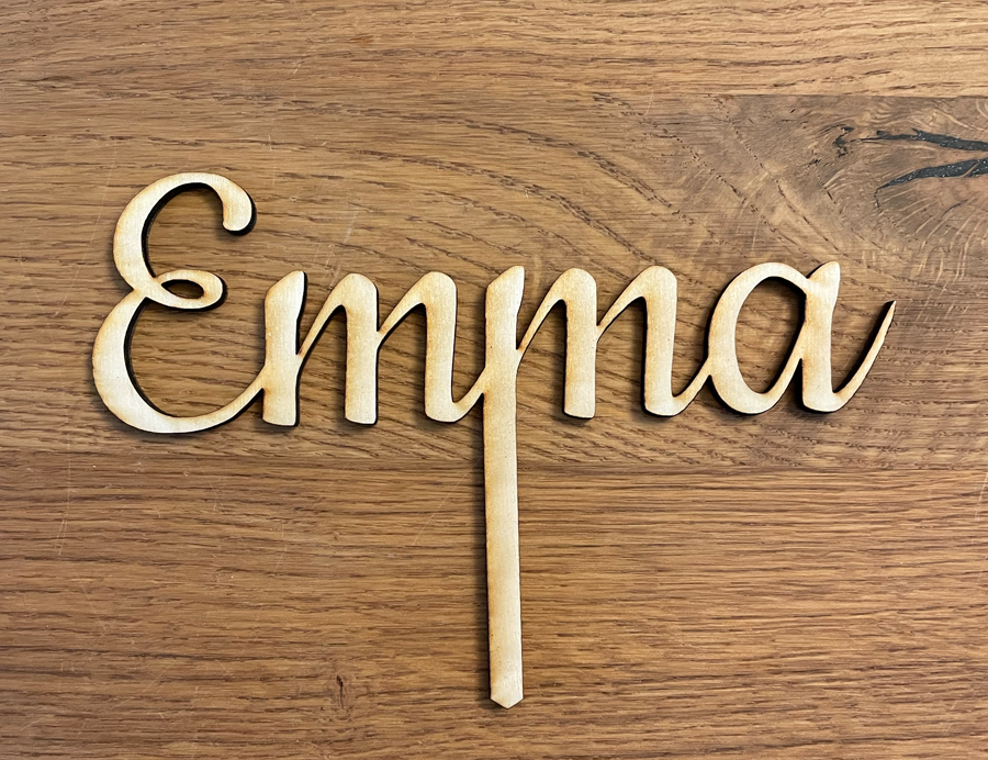 Hinweis: Da die Topper aus Holz sind, empfehlen wir den Teil des Stabes, der im Kuchen steckt, vorher mit etwas Frischhaltefolie oder Alufolie zu umwickeln.