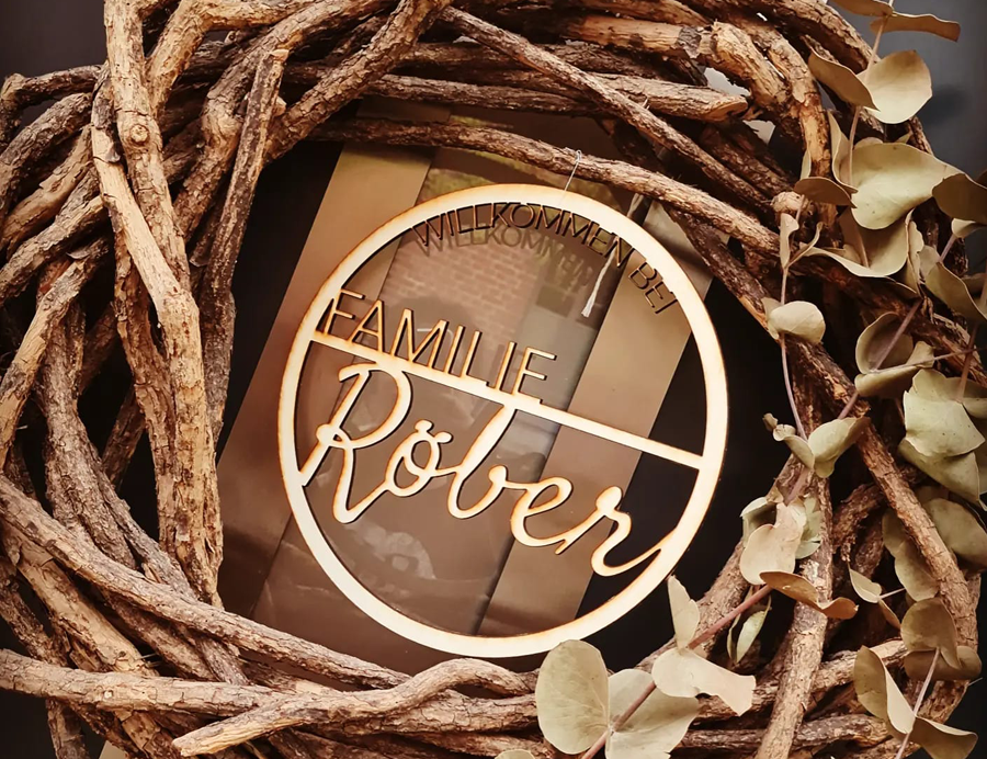 Personalisierter Holzkranz mit Familie und eurem Wunschnamen.